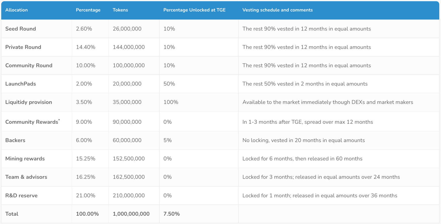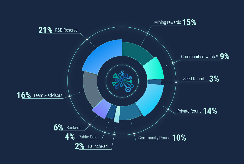 NTX token is distributed in three rounds: (1) seed+private round reserved for valuable ecosystem partners; (2) community round reserved or the SingularityNET community and (3) public round, consisting of two IDOs and DEX listing;